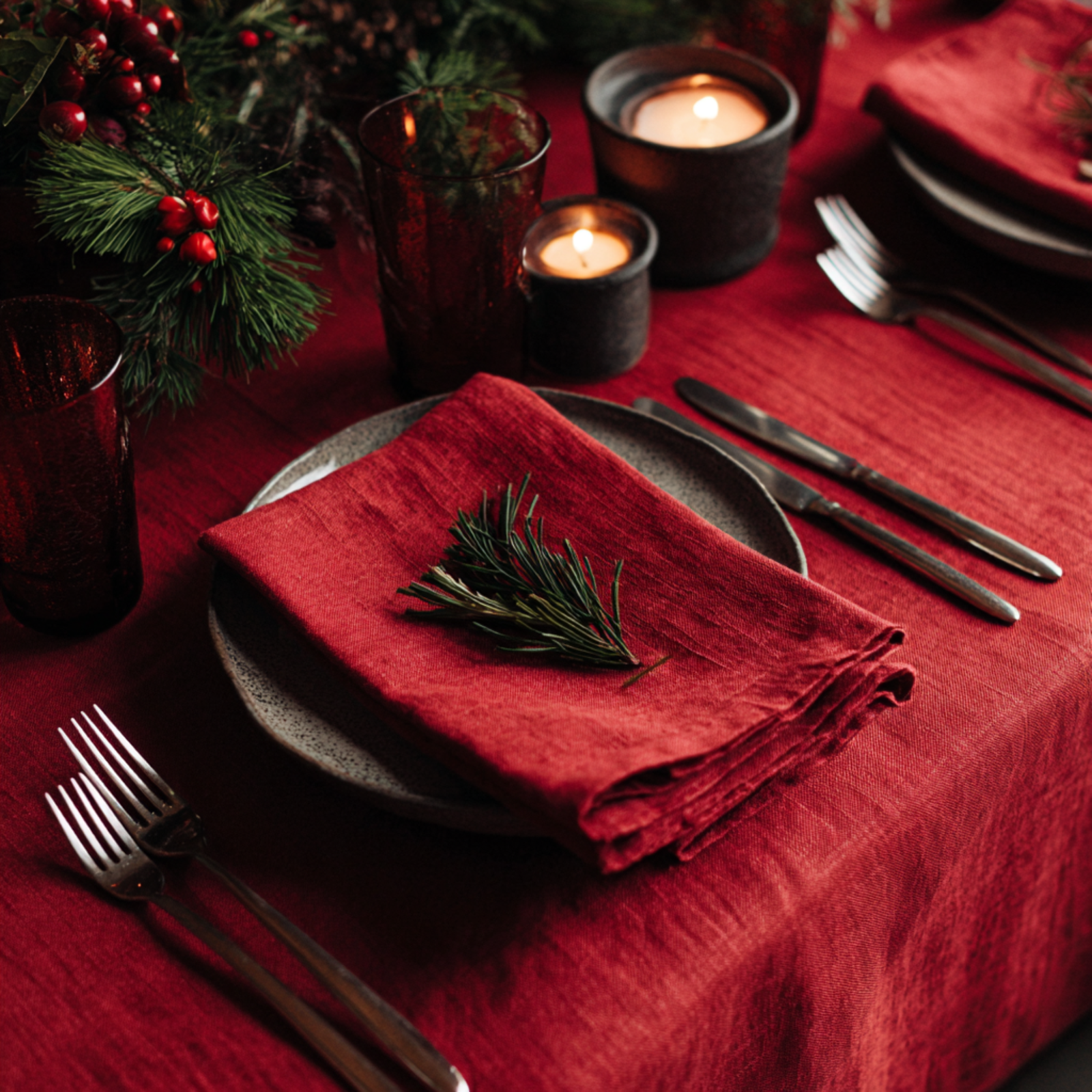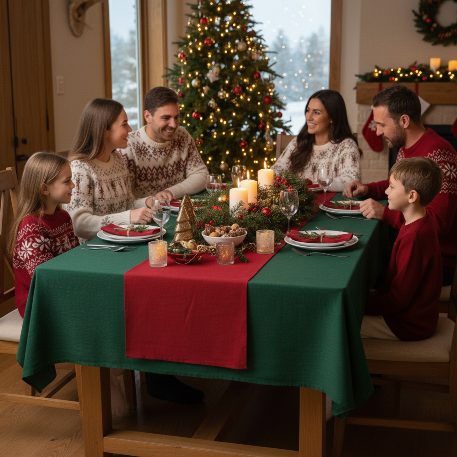 Get your home holiday-ready with our new Christmas textile collection. Set the perfect festive table with our stunning tablecloths, runners, and napkins, available in your choice of rich classic red or deep forest green. Coordinating kitchen towels and stocking socks completes the look, bringing a touch of celebration to the heart of your home. Beautiful Christmas essentials are designed to add instant style and warmth to your seasonal gatherings. Make this Christmas feel special and look unforgettable.