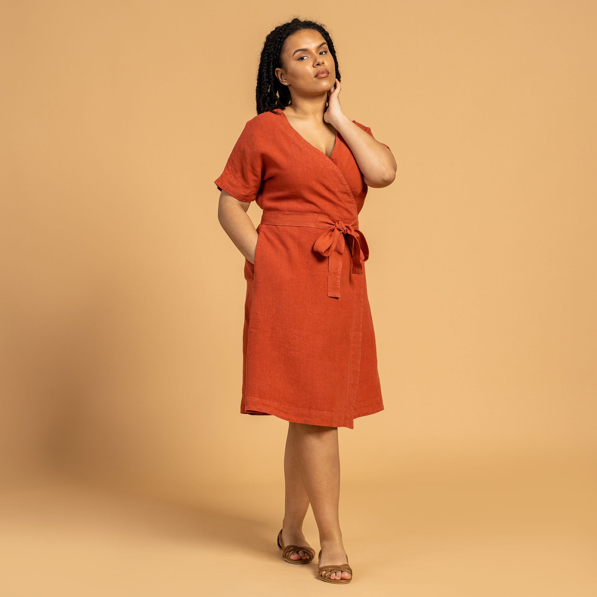 It really exists! A perfect women’s dress that beautifully accentuates your figure and body curves. Introducing wrap-style dresses that allow you not only to adjust your sizing but also make your figure look more flattering. Many wrap-style dresses have V-necks, making our dresses suitable for formal events, work, casual outings, weddings, or vacations. Easy to put on Linen dresses quickly wraps around your body, meanwhile tie belt beautifully defines your waist, creating an hourglass silhouette.