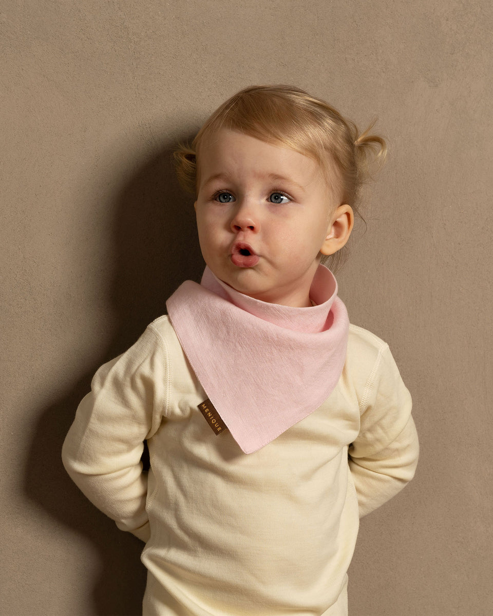 Our linen baby drool bib is shaped like a triangle and has a snap button to keep it securely snug. Made from 100% linen, it's gentle on your baby's skin and perfect for catching drools and dribbles.