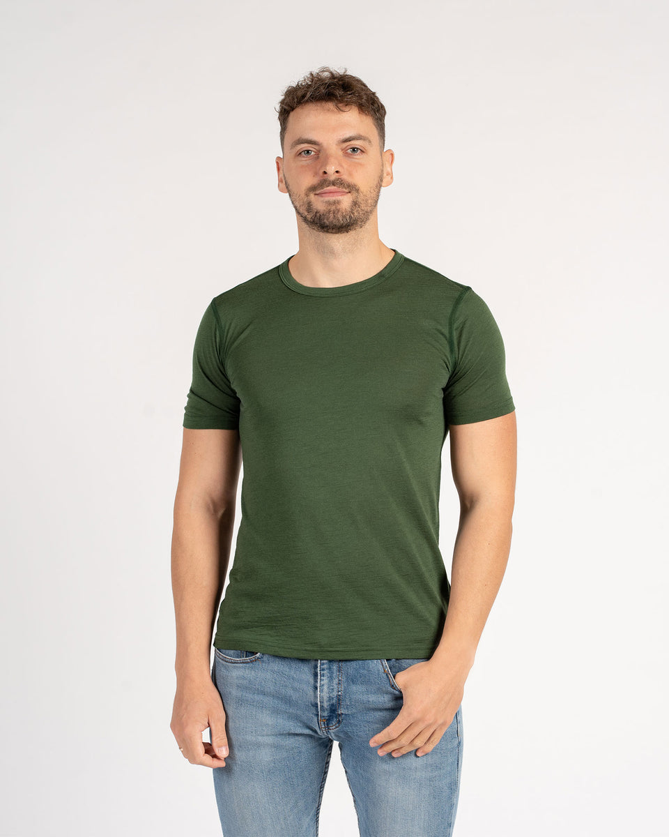 Designed for both exercise and everyday wear, this short sleeve tee is sustainably crafted from Merino wool with a special flatlock construction that creates a smooth surface, making slim fit t-shirt ideal for wearing next to the skin. With merino tee classic cut, it seamlessly adapts to any situation, whether you're at the office, on a date night, or working out. The wrinkle-resistant, heavenly soft fabric offers premium smoothness, durability, and flexibility, making hiking shirt a versatile choice for workouts, layering, or simply relaxing. This essential piece is a 24/7 go-to for men on the move, passing the test in every season. The breathable Merino wool construction naturally regulates moisture on your skin and offers protection from UV light, along with antimicrobial properties for added freshness.